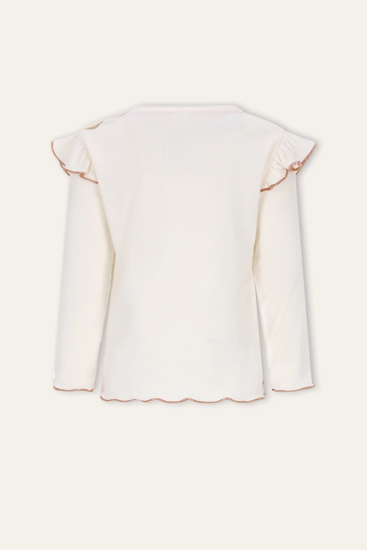 De B.Nosy Mini Tonya top in ecru is perfect voor kinderen die stijl en comfort willen! Dit T-shirt heeft trendy ruffles bij de schouders en is gemaakt van een fijne mix van polyester, katoen en elastaan voor een geweldig draagcomfort. Deze top laat zich gemakkelijk combineren met het Shortje Pam, waardoor je kleine meid fashionable voor de dag komt. Laat je kindje stralen in deze speelse en veelzijdige top! Scan de QR-code om de reis van het kledingstuk te ontdekken!