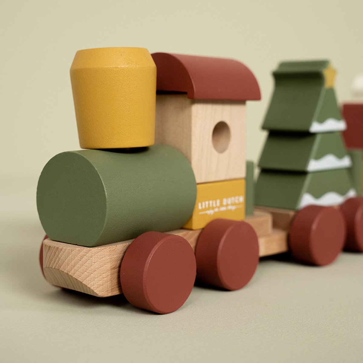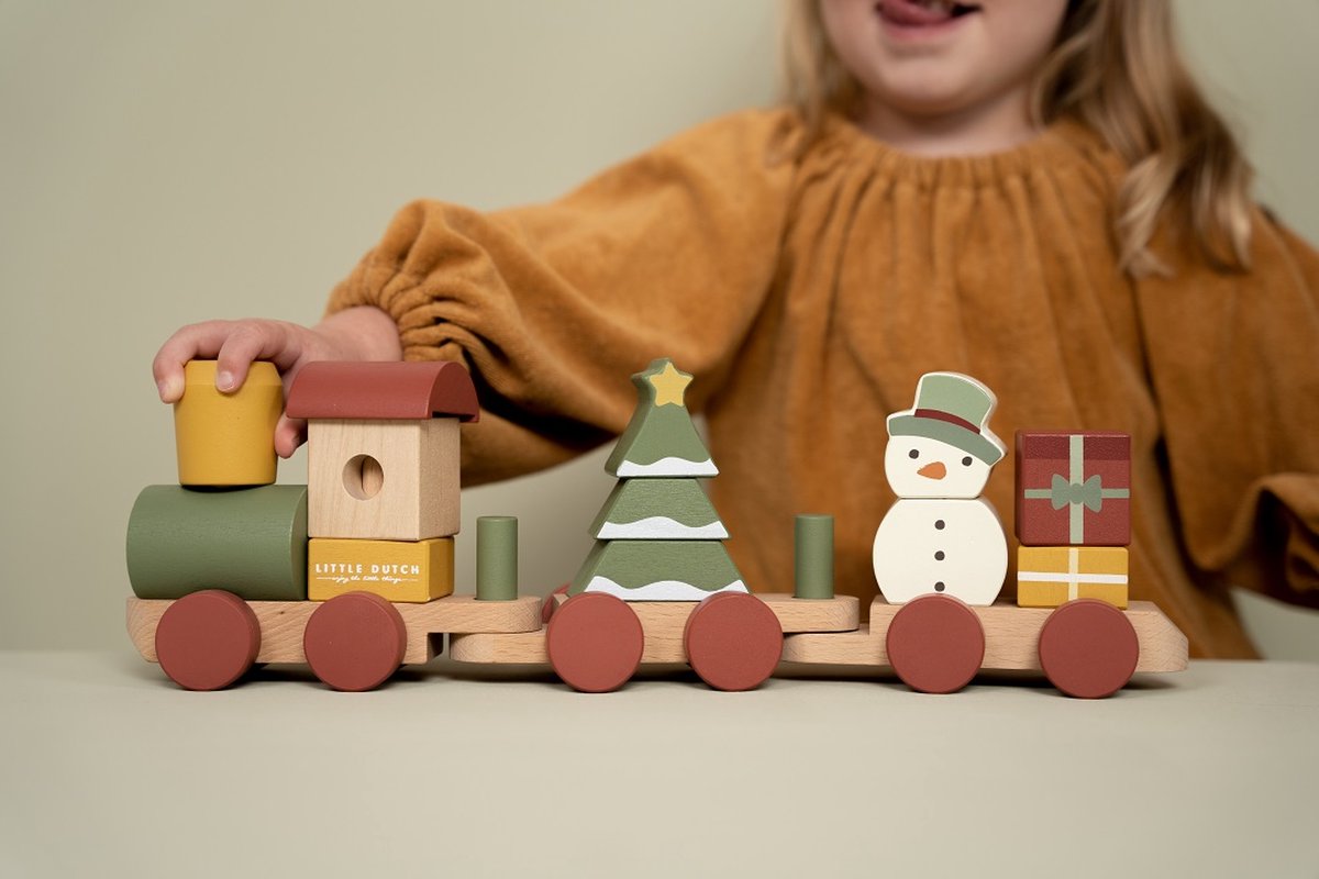Kom aan boord van de kersttrein! Help je mee met het inladen van de cadeautjes? De sneeuwpop is al ingestapt. Bouw met behulp van de stapelblokken in verschillende vormen de kerstboom in de wagon. De stapeltrein stimuleert de hand-oogcoördinatie van je kleintje en ondersteunt de fijne motoriek. Het perfecte cadeau voor onder de boom, om mee te spelen tijdens de feestdagen.
