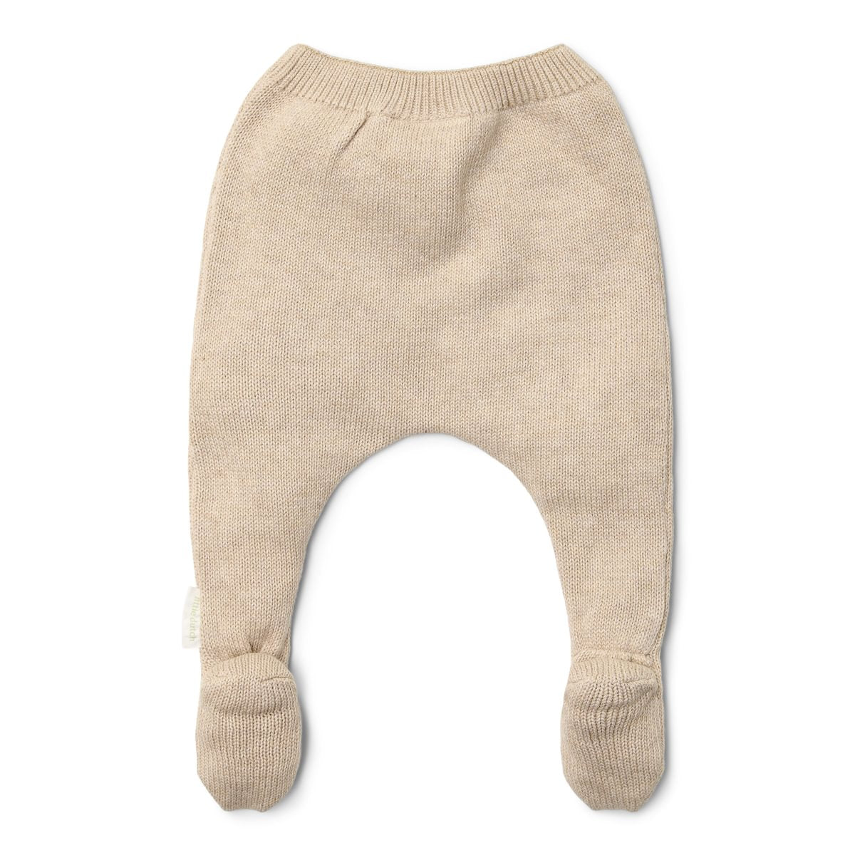 Deze heerlijk zachte broek met voetjes in zandkleurig gemêleerd breisel is een must-have voor koude dagen. Geen gedoe meer met sokken die steeds uit gaan - het broekje met voetjes houdt die kleine teentjes lekker warm. Het subtiele strikje als detail zorgt voor een vleugje schattigheid, terwijl de zachte, warme kwaliteit voor optimaal comfort zorgt. Gemaakt van biologisch katoen en Oekotex-gecertificeerd, dus perfect voor de gevoelige babyhuid en de planeet. Combineer het met het bijpassende vest en de accessoires voor een complete, cosy outfit. Verkrijgbaar in de maten 44 tot 74.