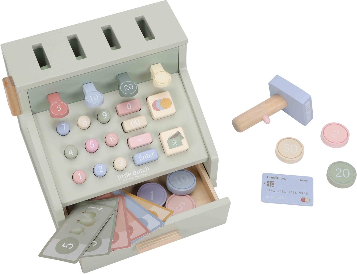 Rekenen, scannen en afrekenen maar! Met deze houten kassa voelt winkeltje spelen nóg echter. De kassa is uitgerust met een scanner, een pinpaslezer, knoppen en een kassalade voor munten en biljetten. Ook zit er een pinpas bij, zodat klanten zowel contant als met de kaart kunnen betalen. Een fantastische manier om spelenderwijs met geld en cijfers bezig te zijn. Wat mag het zijn vandaag?