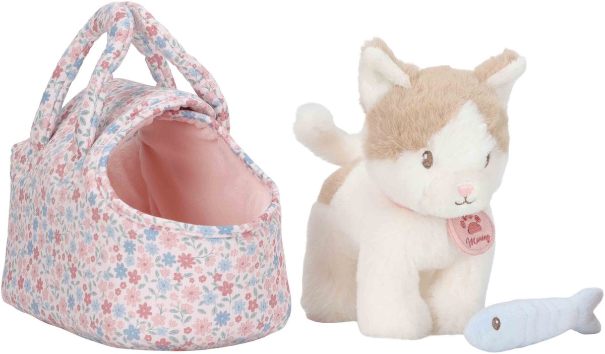 • - Set met knuffelkat Marley, bloemenprint tasje, knuffelvisje en halsbandje