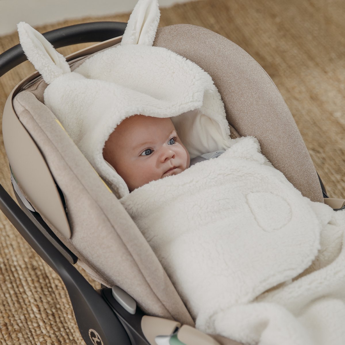 De wikkeldeken is niet alleen superzacht, maar ook heel praktisch. Dankzij de openingen aan de achterkant kun je de deken veilig vastmaken in een autostoel met een drie- of vijfpuntsgordel. Zo neem je je kleintje warm en veilig mee onderweg. Ook ideaal voor gebruik in de wandelwagen of wipstoel.