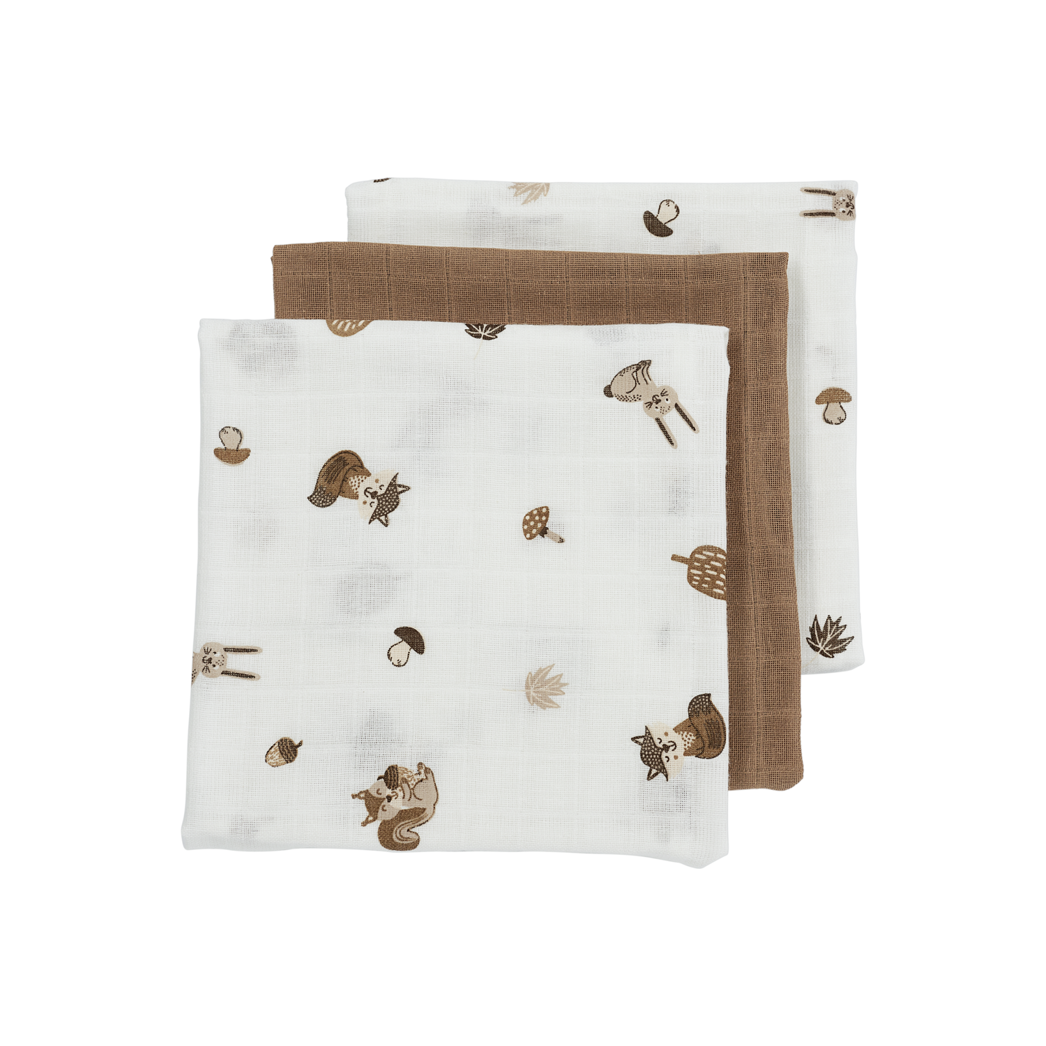Meyco Hydrofiele doeken Forest Animals Toffee 20x17cm - 3-Pack