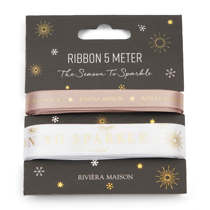 De kerstboom versieren, je pakjes mooi inpakken, daarvoor gebruik je The Season To Sparkle linten. Een wit lint met de naam van RM en een lichtbeige met de tekst 'The Season to Sparkle'. Alles in goudkleurige opdruk, dus sprankelend worden de boom of de cadeautjes in elk geval.