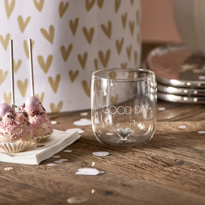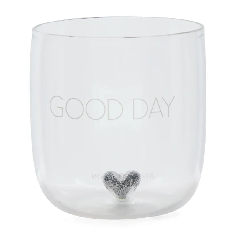 Ook het Good Day-glas behoort tot de mondgeblazen glascollectie van Rivièra Maison. Een techniek die onze vakmensen echt in de vingers hebben. Dat is wel te zien bij dit bijzondere glas, waarbij in de bodem een hartje is verwerkt dat gevuld is met zilveren glitters voor een sprankelend resultaat. Verkrijgbaar in verschillende maten.